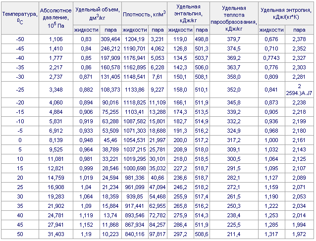 6. Характеристики хладагента R717 на линии насыщения;