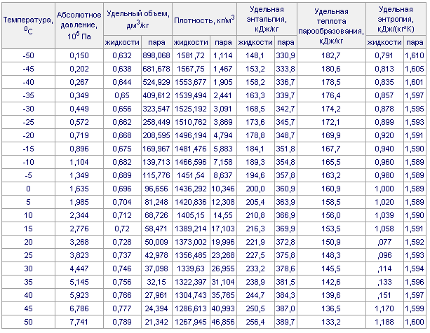 6. Характеристики хладагента R717 на линии насыщения;