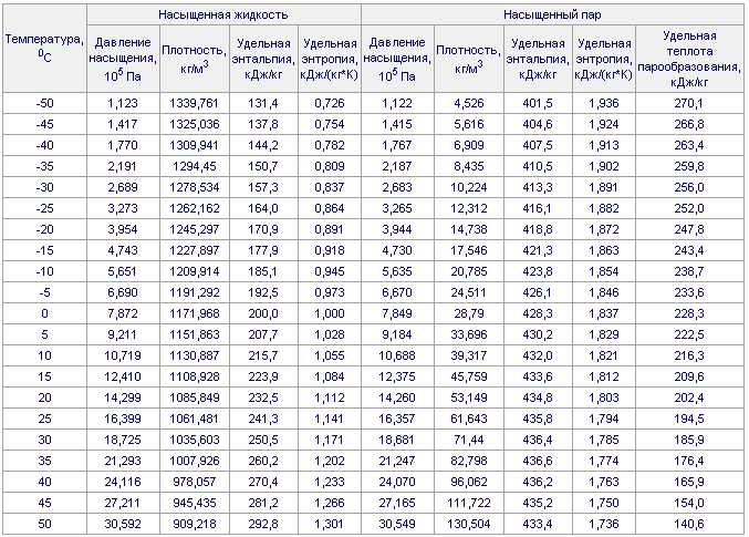 4. Характеристики хладагента R22 на линии насыщения;